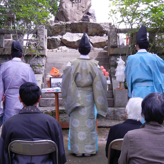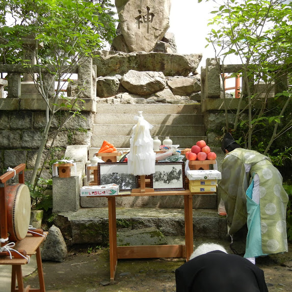 八月二十五日 八坂神社正門横の公園に建立されている「軍馬慰霊塔」の前で、馬の御霊祭を行っています。