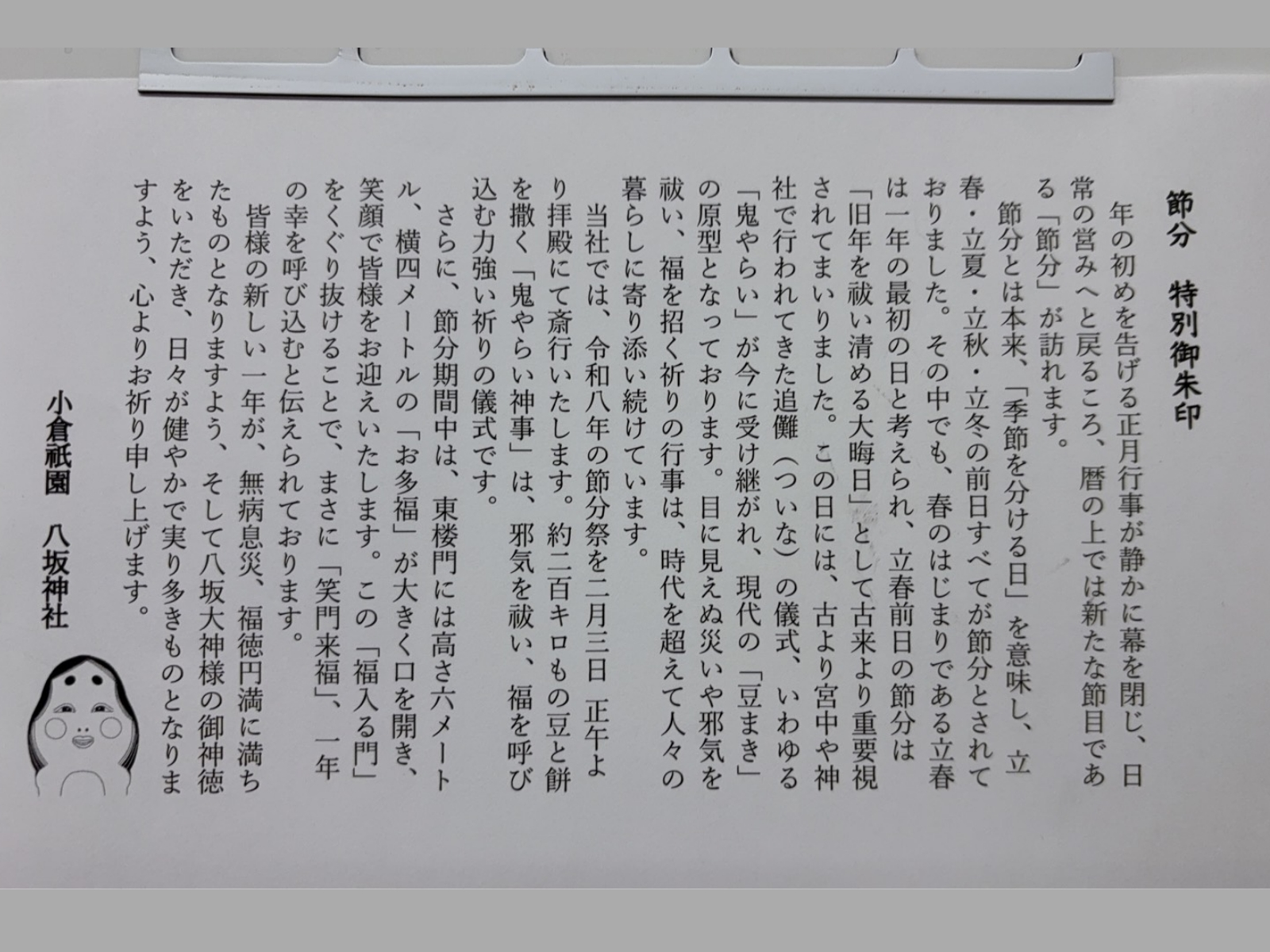 節分祭の特別御朱印限定百枚です。二月一日から頒布します。