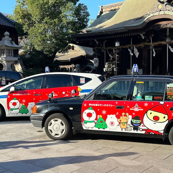 幸運のサンタタクシー 今年も小倉祇園八坂神社から出発します。