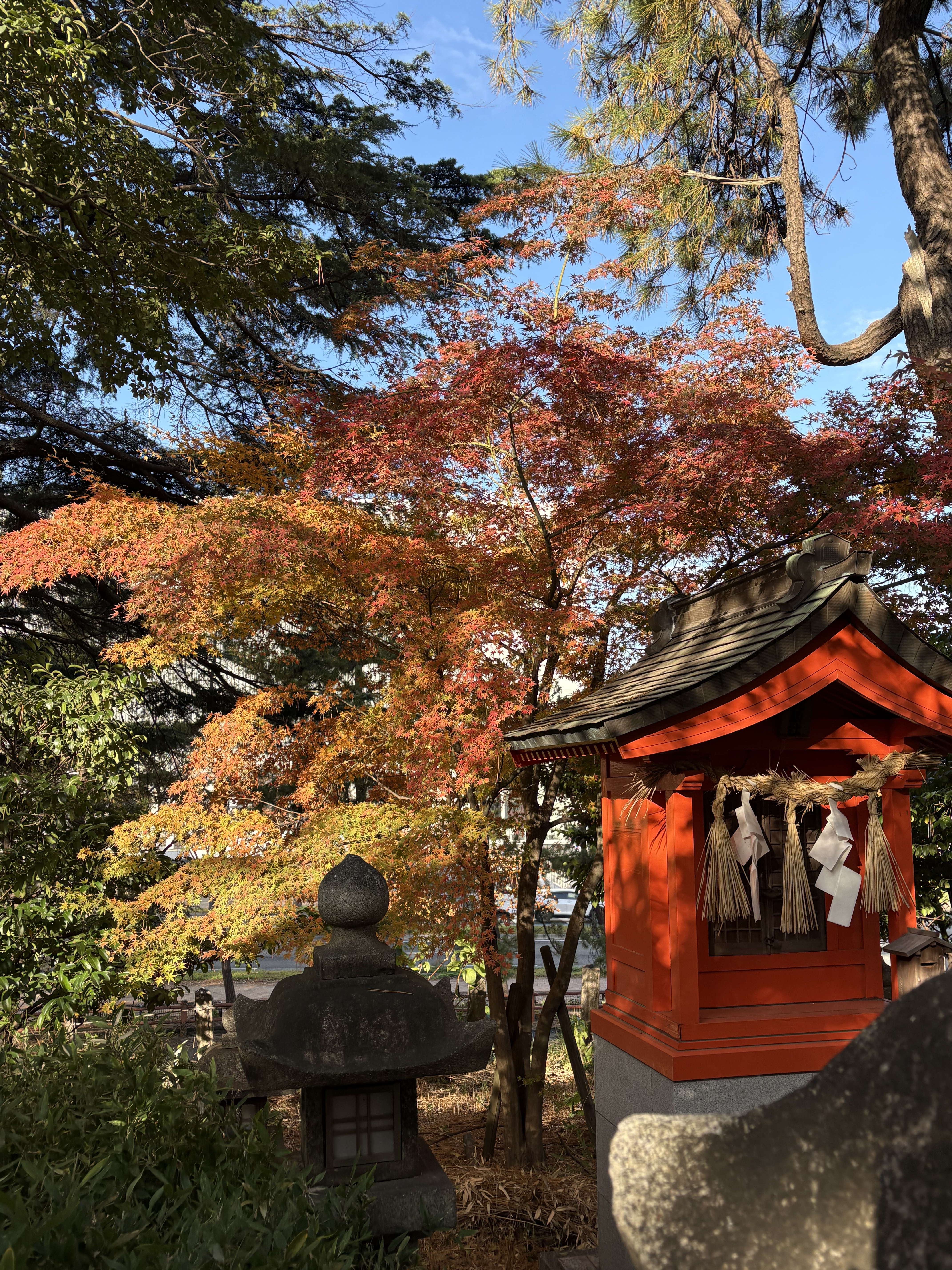 赤や黄色に色づいた葉が静かに境内を彩っていますので、ぜひお立ち寄りください。