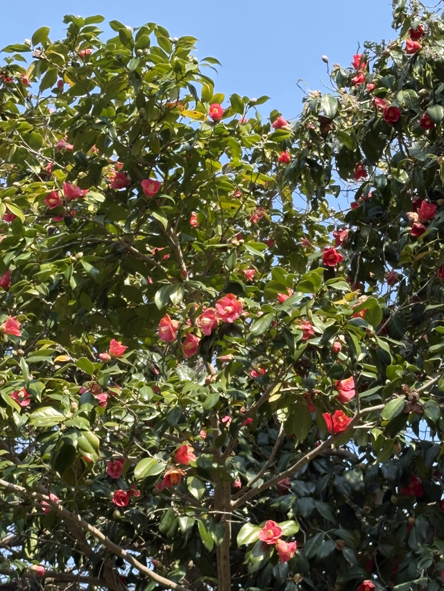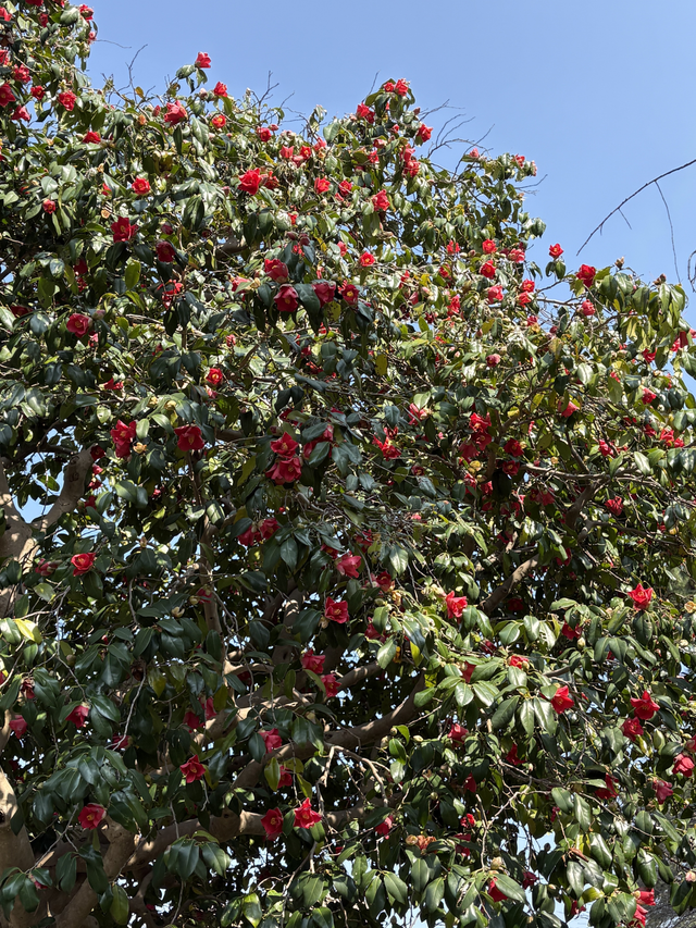 境内では、色とりどりの椿が満開を迎えています。